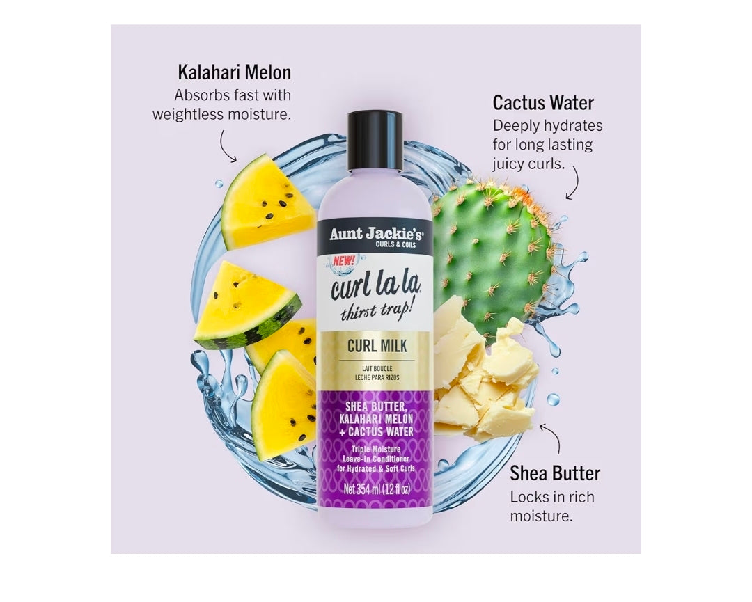 Aunt Jackie's Curls & Coils Curl La La Thirst Trap Curl Milk, 12 fl oz - Triple Moisture Leave-In Conditioner for Hydrated and Soft Curls