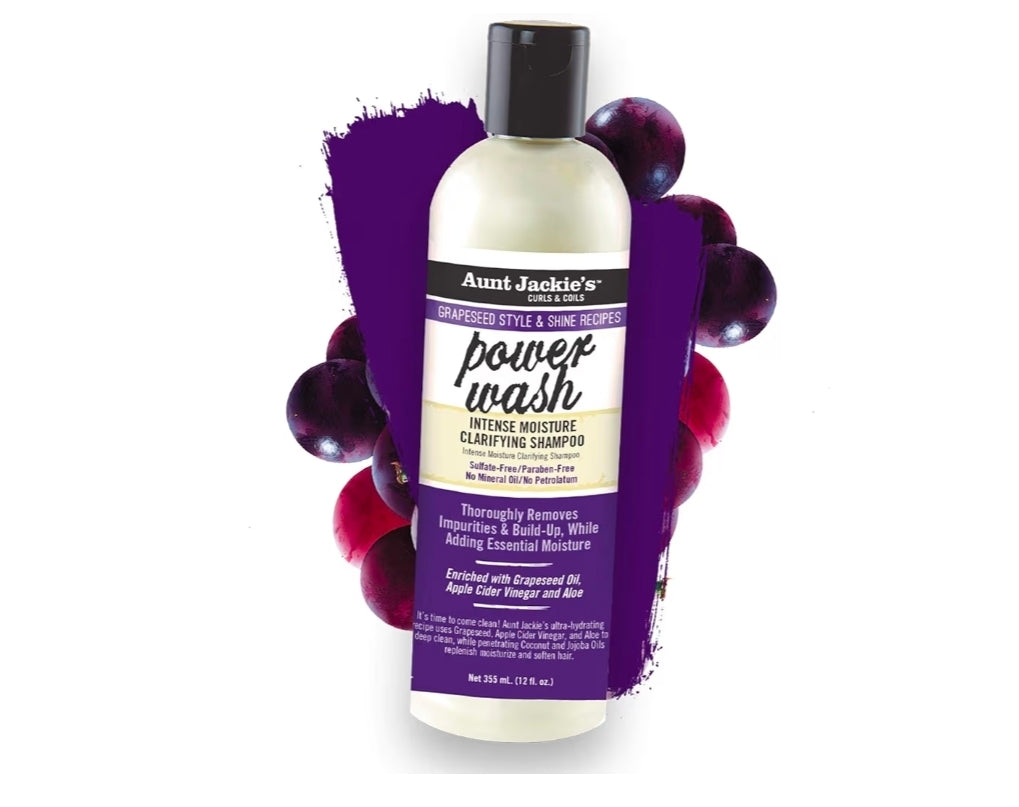 Aunt Jackie's Grapeseed Style and Shine Recipes Power Wash Intense Moisture Clarifying Hair Shampoo, 12oz