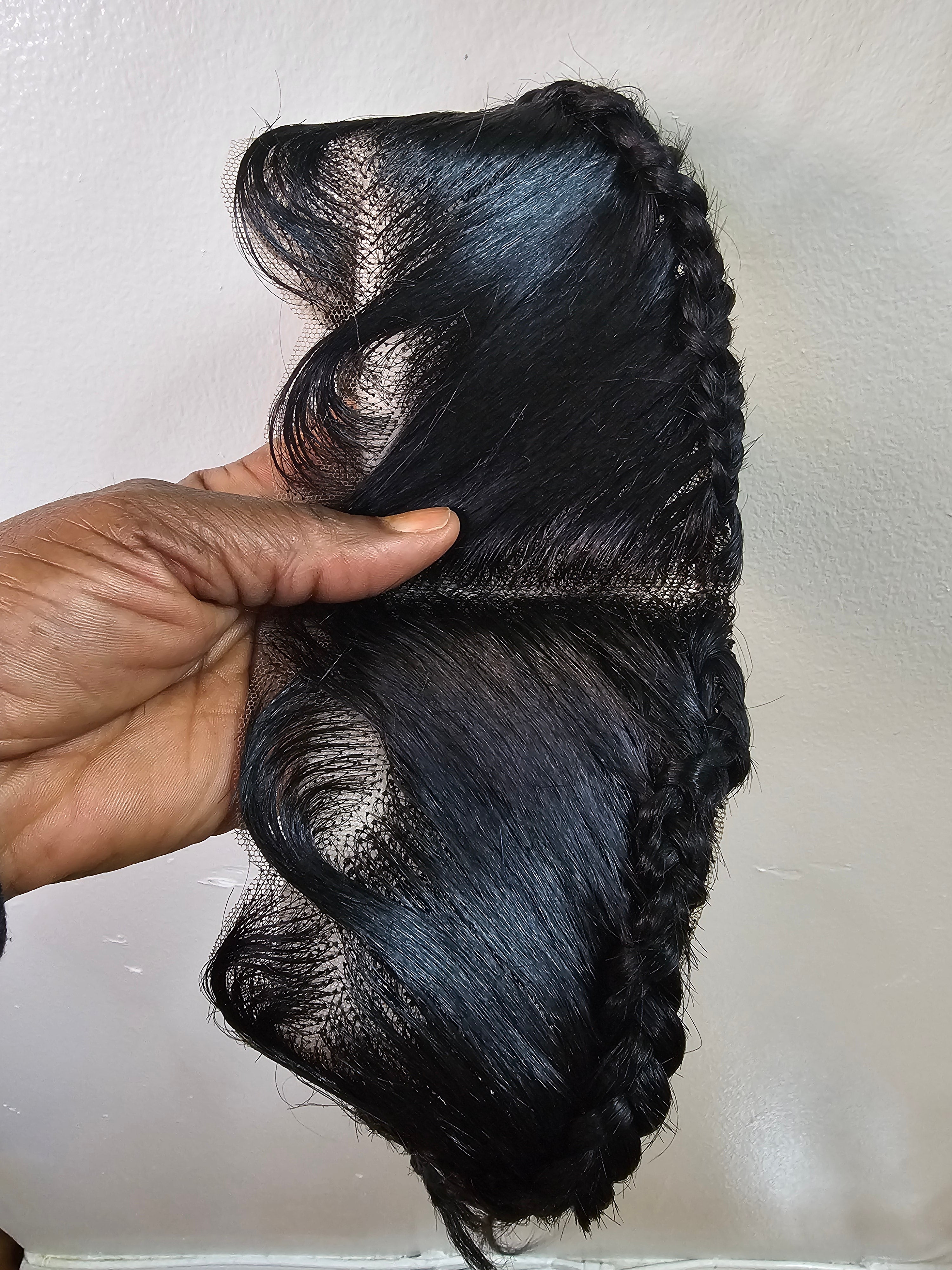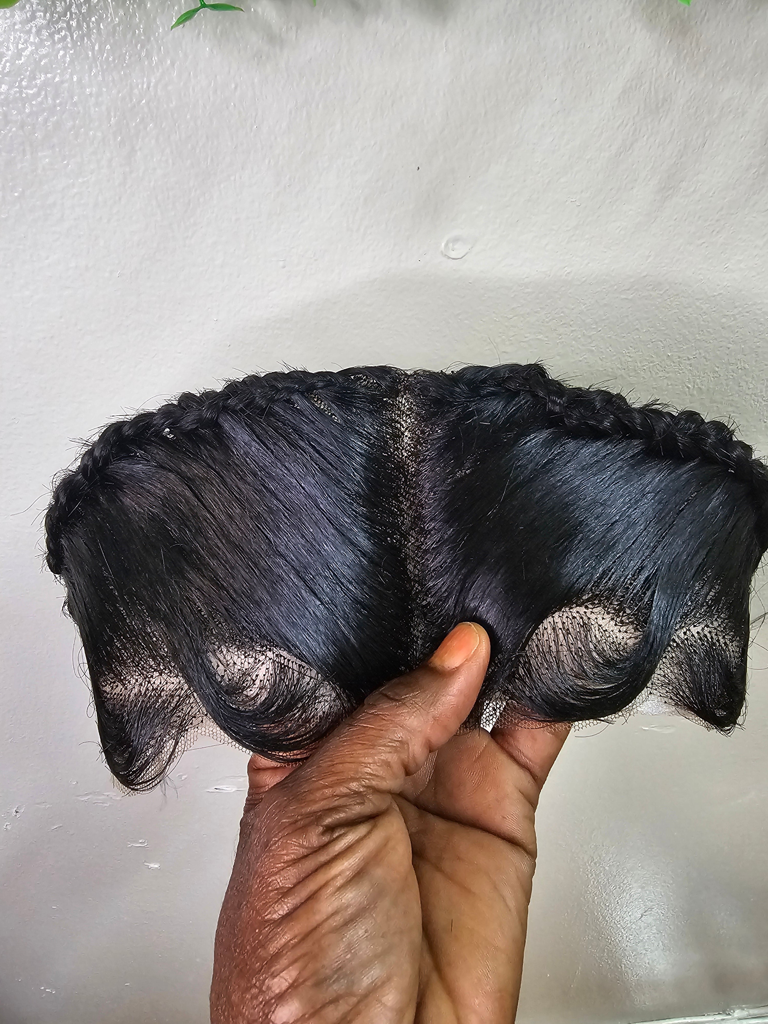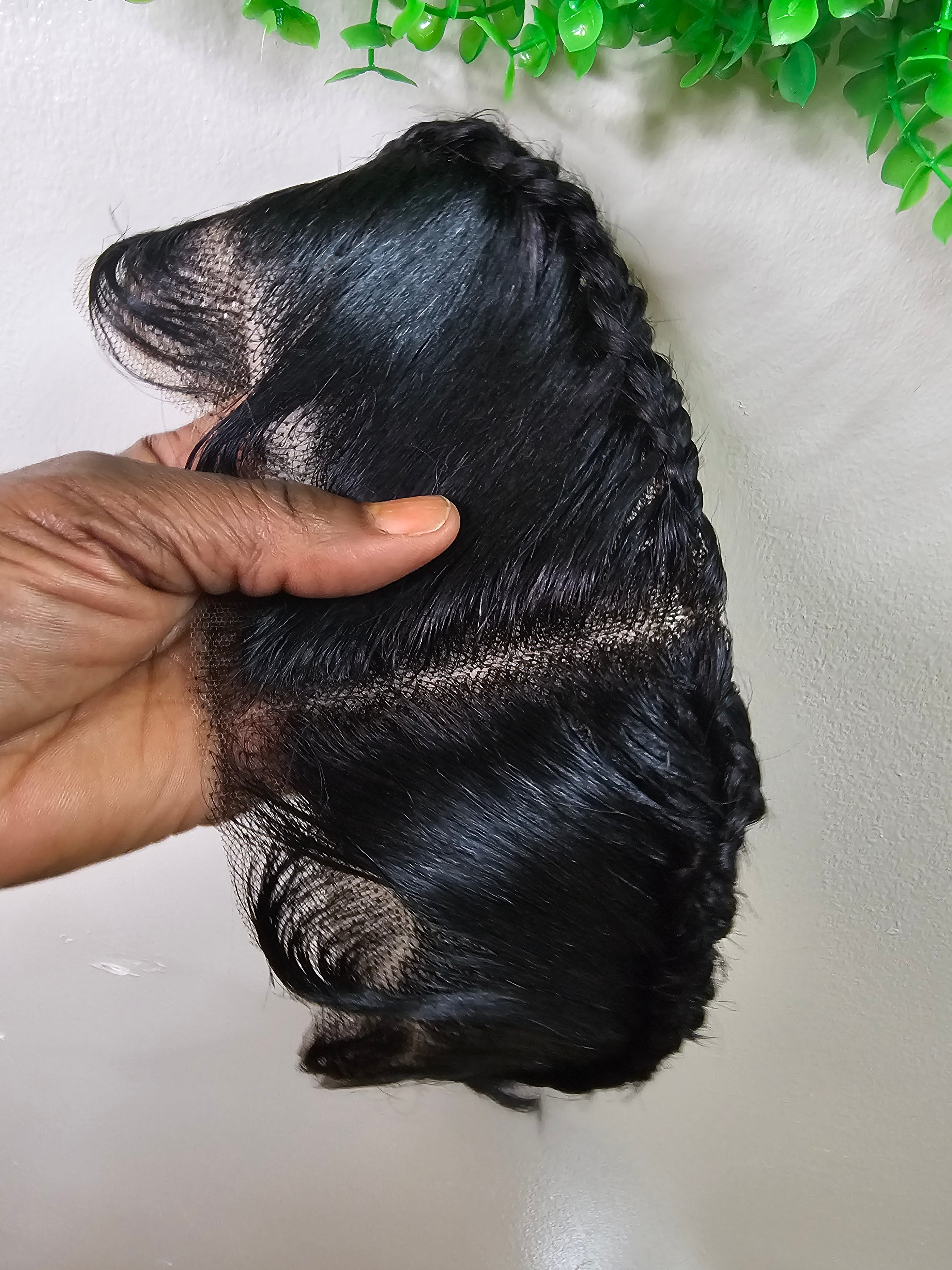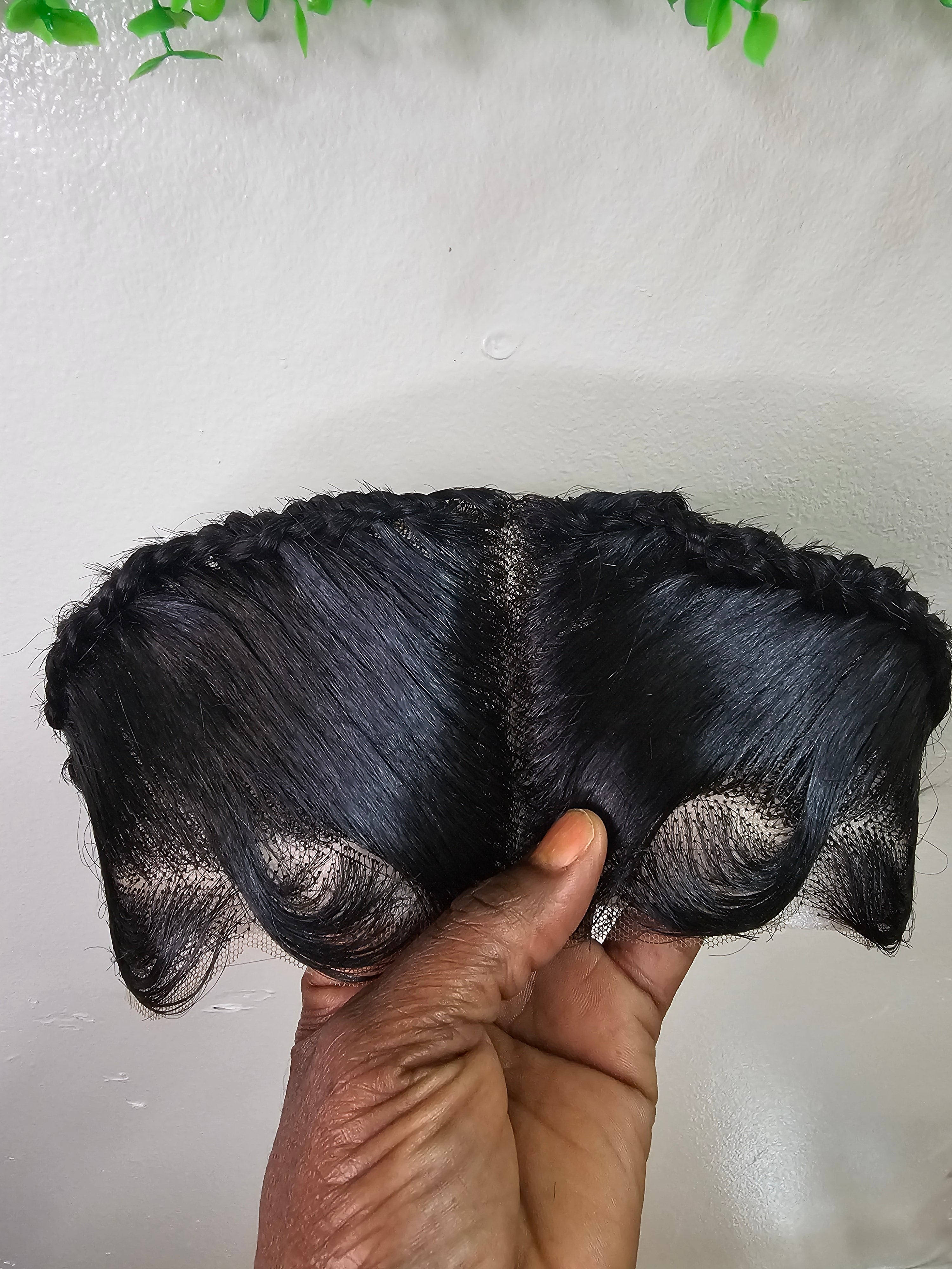 Ready To Wear Glueless Gele Turban Frontals 13*4 Human Hair Full Frontal with Design Color 1B Off Black