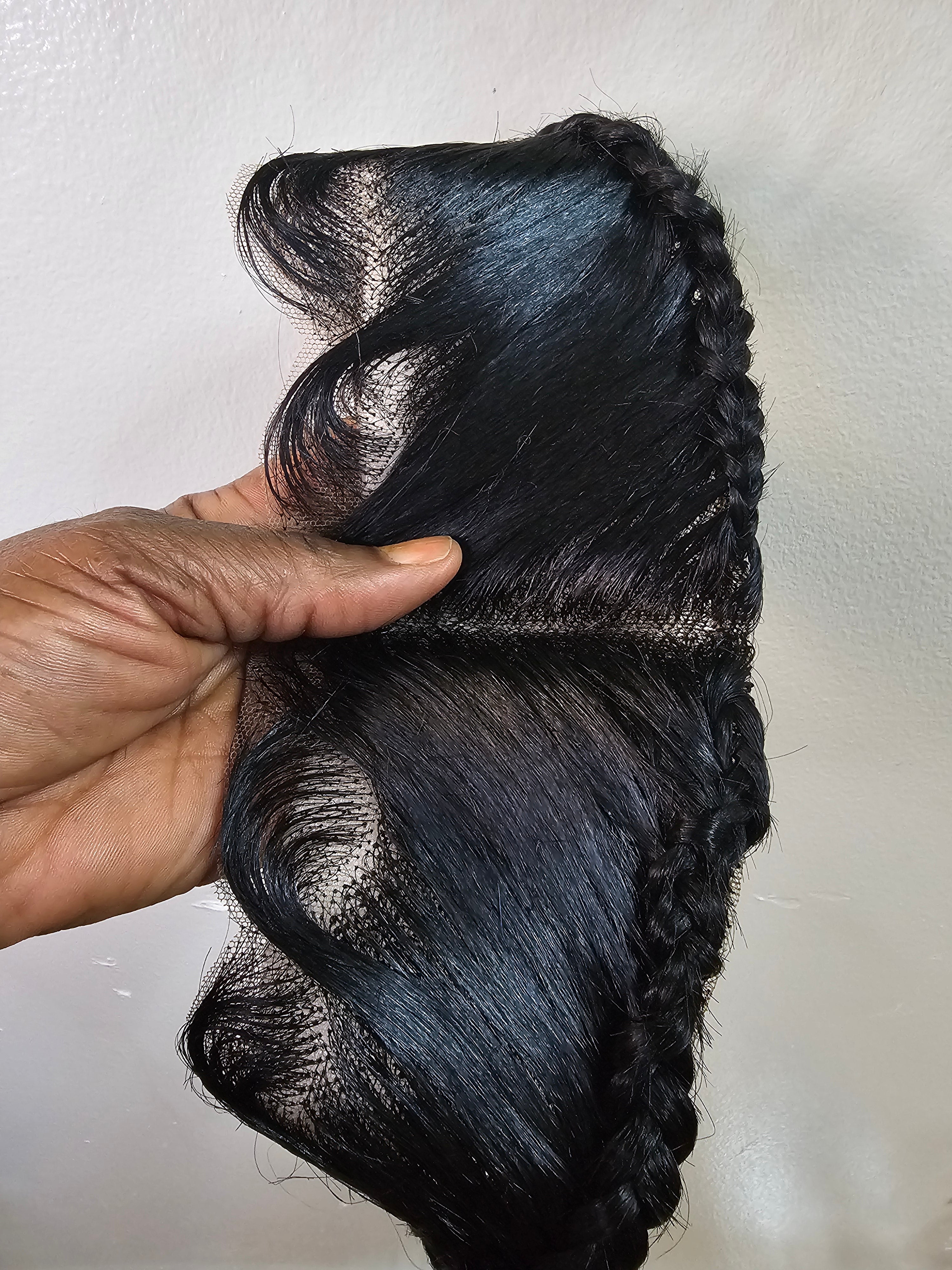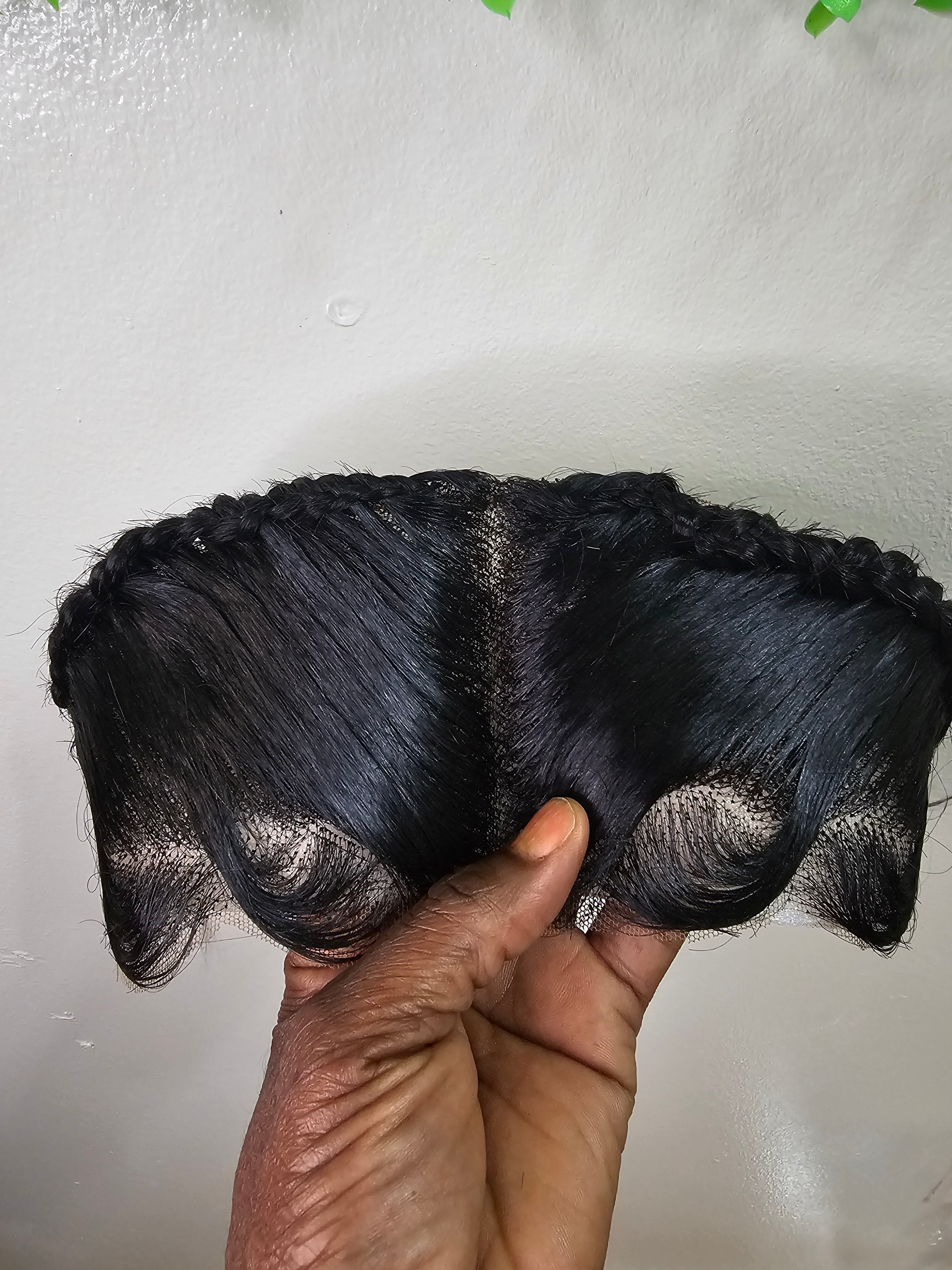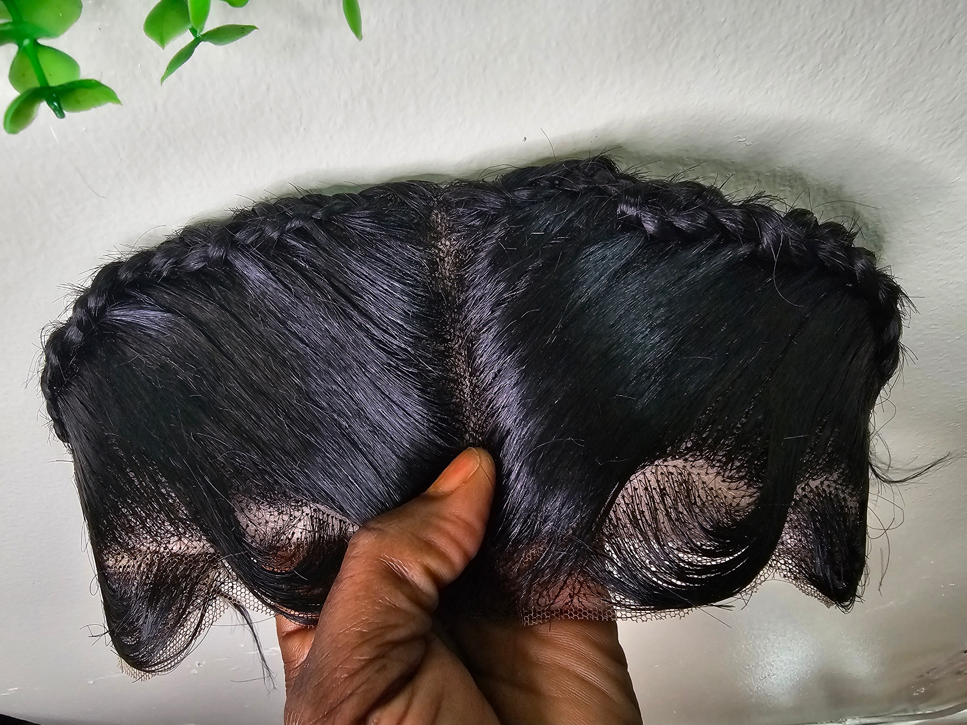 Ready To Wear Glueless Gele Turban Frontals 13*4 Human Hair Full Frontal with Design Color 1B Off Black