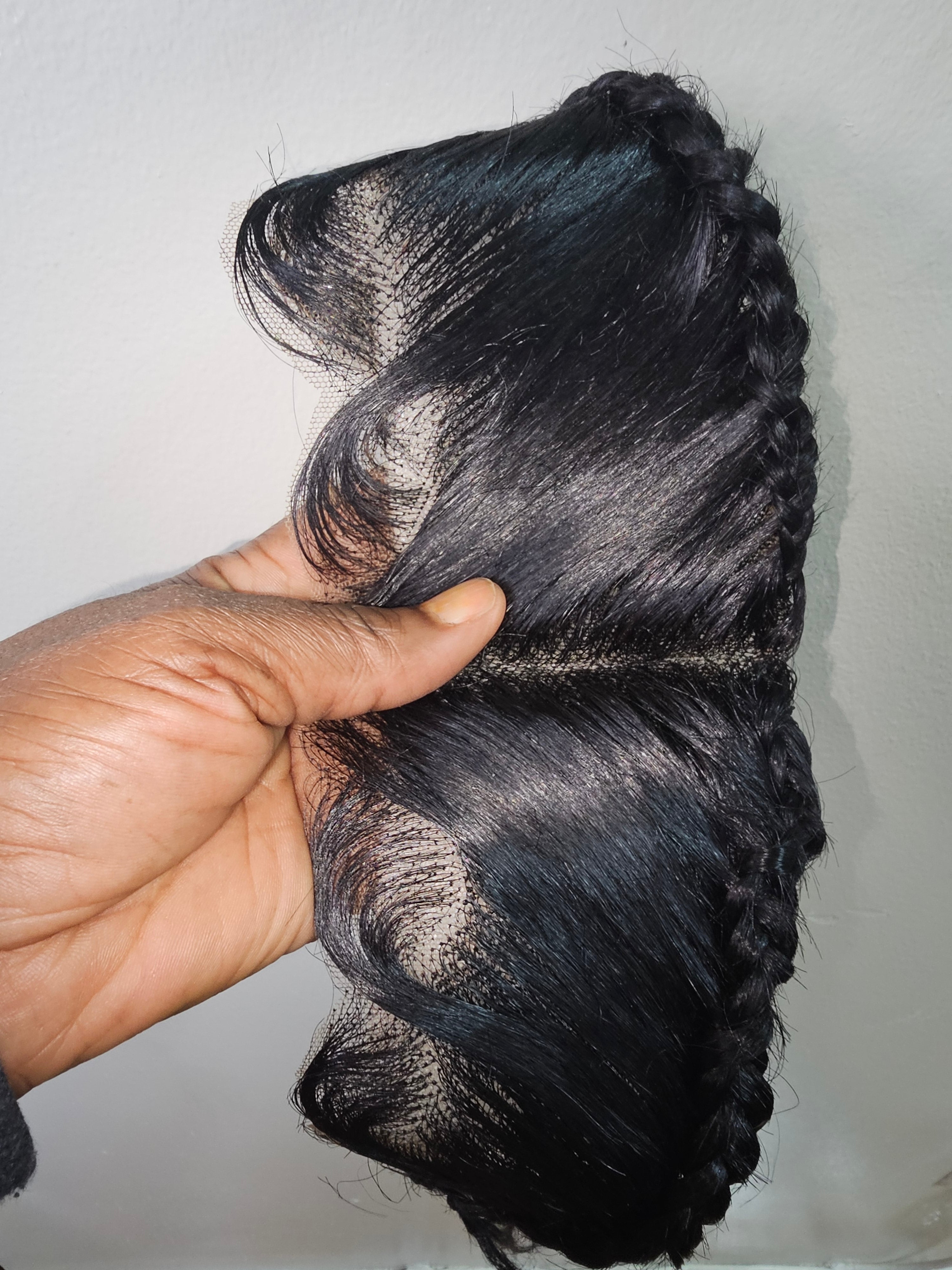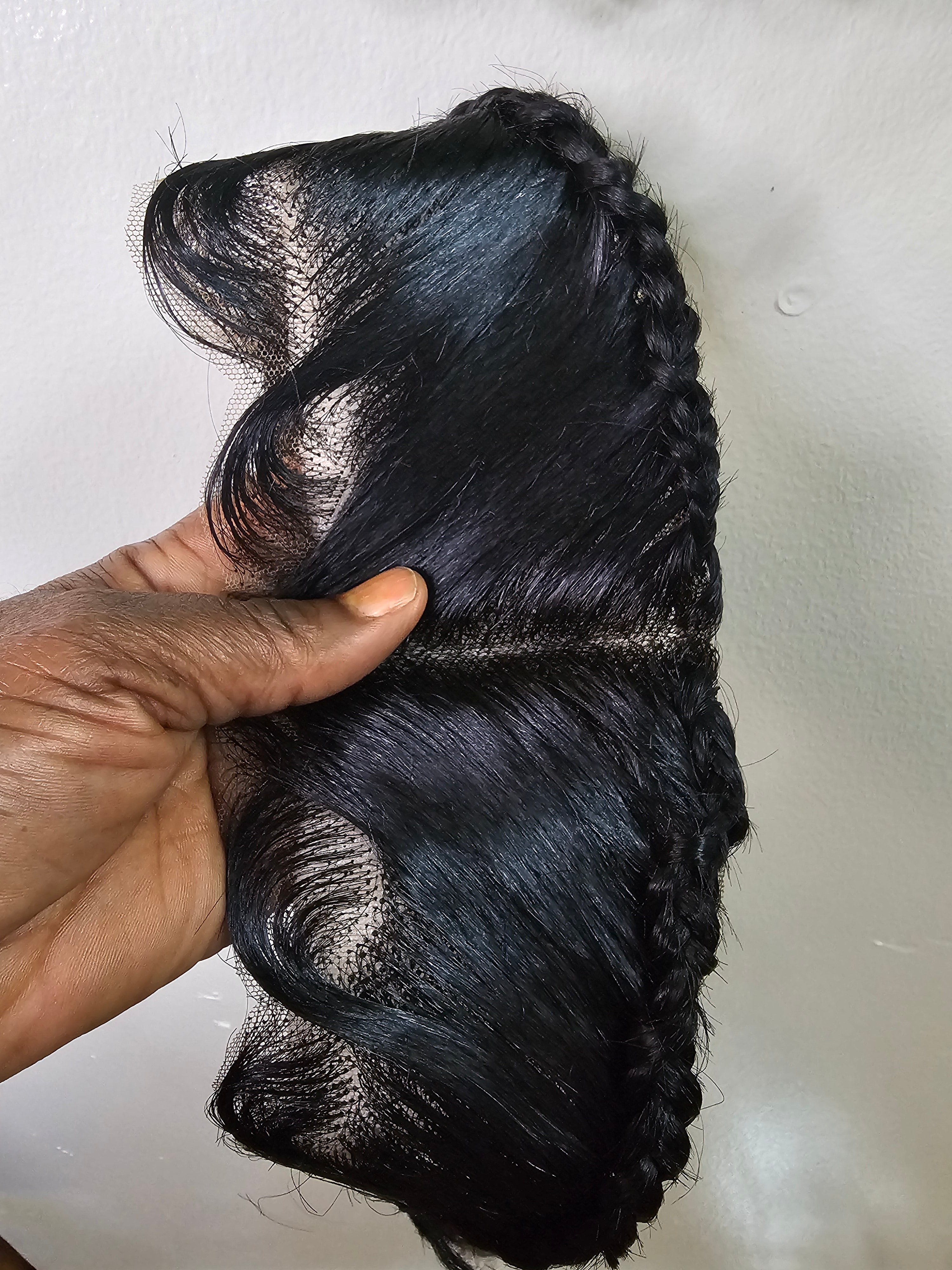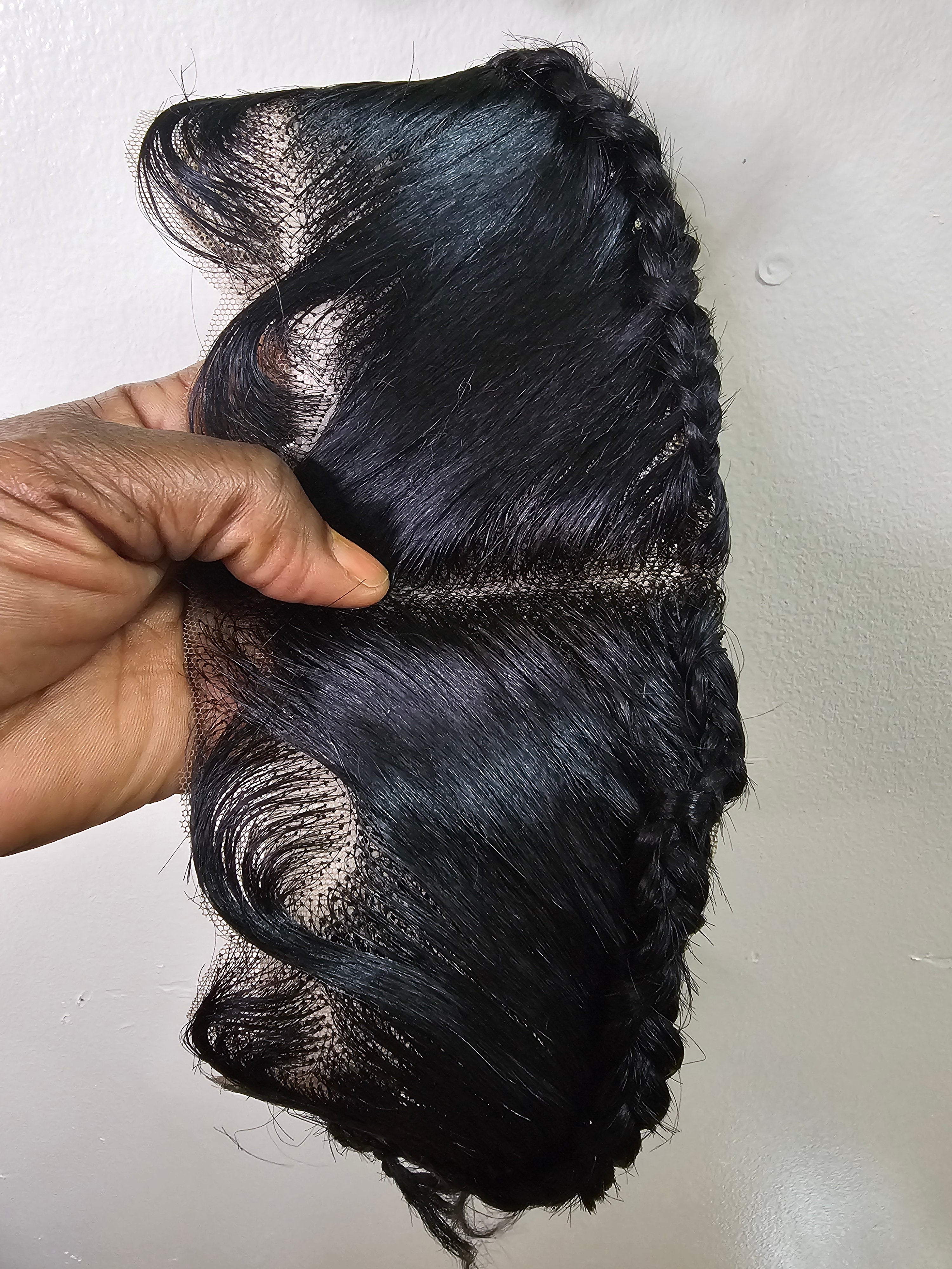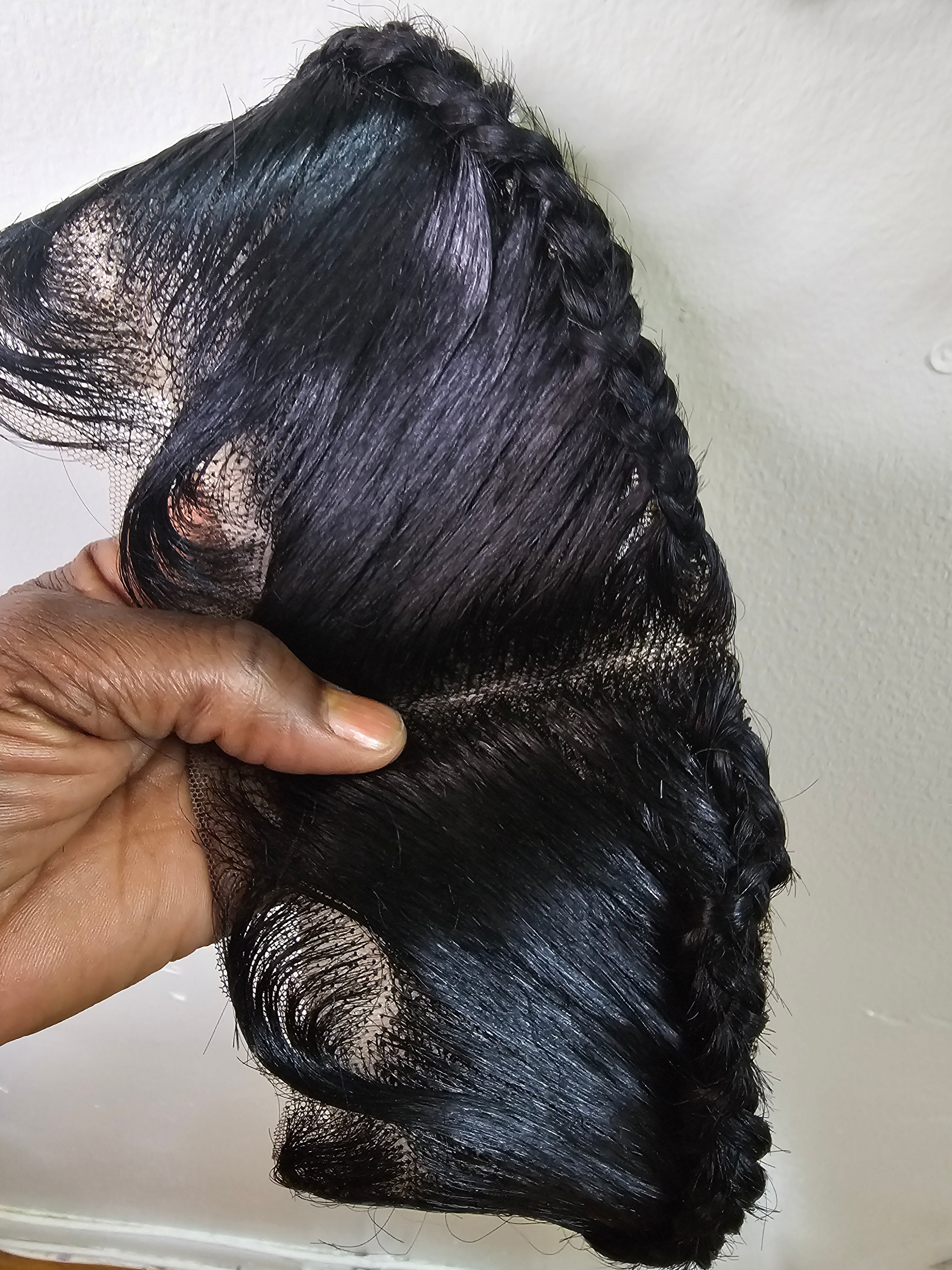 Ready To Wear Glueless Gele Turban Frontals 13*4 Human Hair Full Frontal with Design Color 1B Off Black