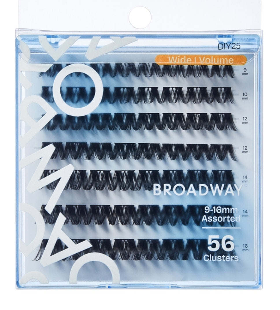 Broadway Lash Clusters, 9-16mm 70 pcs Assorted Volume False Eyelashes, Customizable DIY Individual Lash Extensions for Beginners, Lightweight & Comfortable Wide Band, Great for Everyday Glam