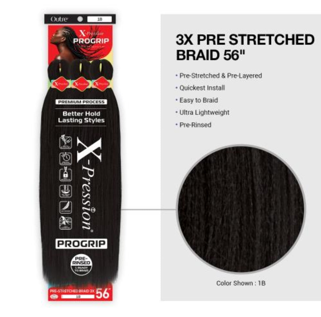 Outre Crochet Braids X-Pression Progrip 3X Pre Stretched Braid 56" Color 1B